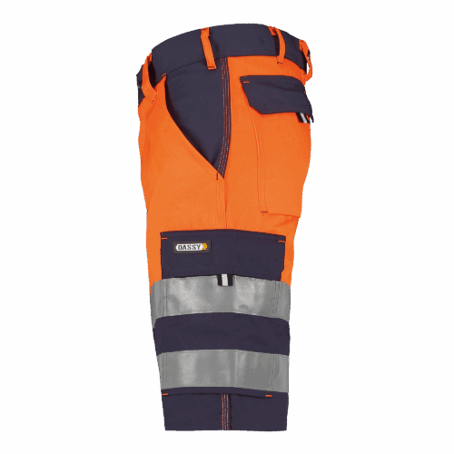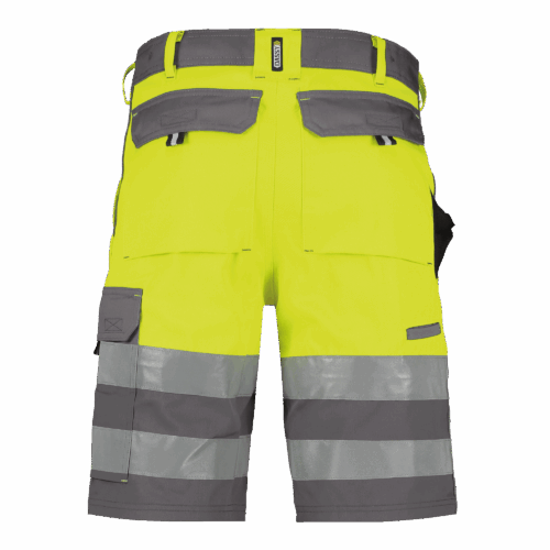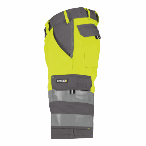 Deze korte werkbroek DASSY® Safety HiVis Venna biedt een hogezichtbaarheidsklasse 1 en diverse praktische opbergzakken.