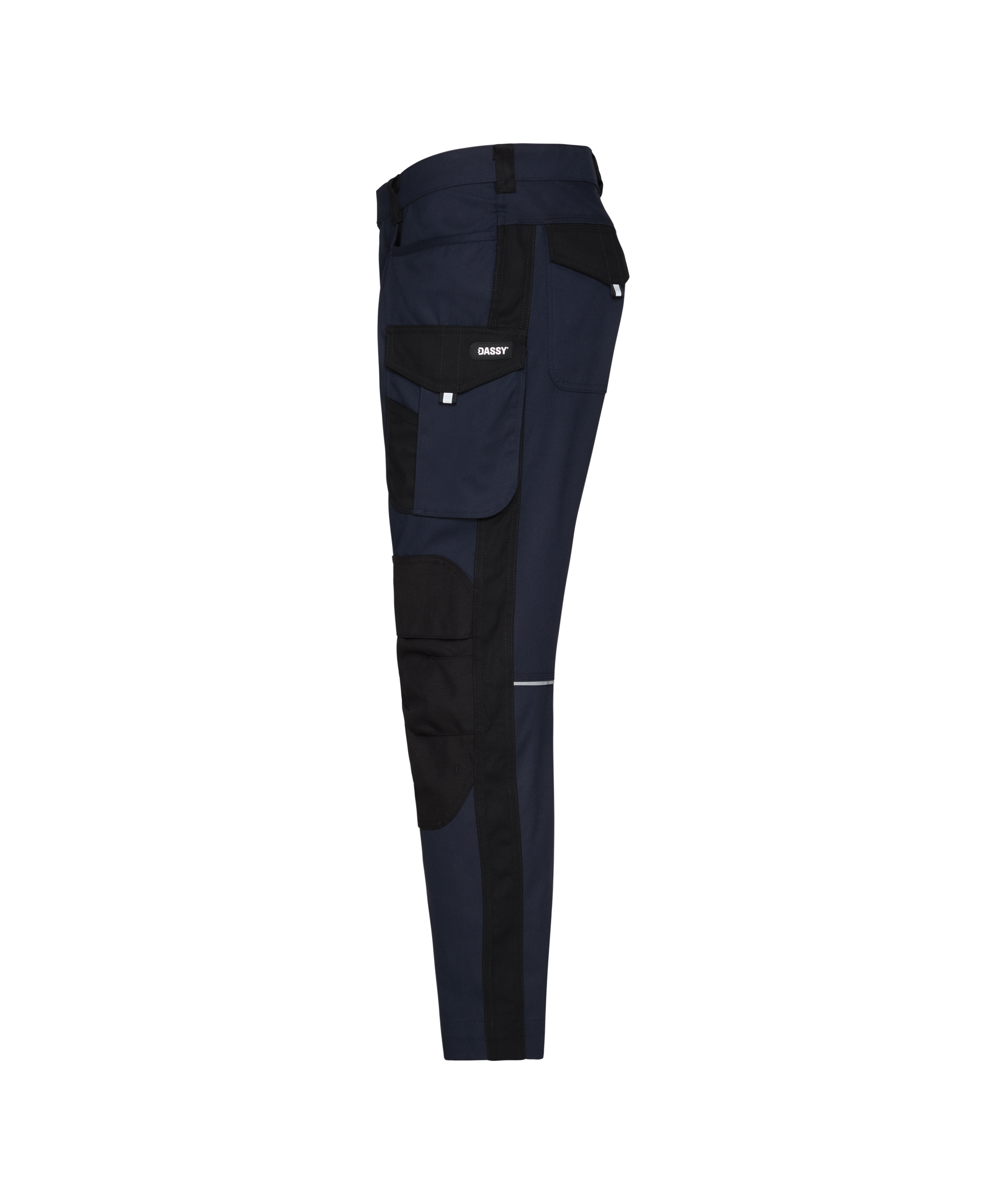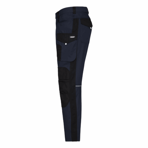 DASSY® Ponti is jouw trouwe bondgenoot als je nood hebt aan extra kniebescherming. Deze werkbroek heeft alle basiselementen van de DASSY® Gaudi, aangevuld met verstelbare, top-loading kniezakken van slijtvaste Cordura®. Slim geplaatste zakken met verschillende compartimenten maken het opbergen van werkmateriaal super eenvoudig. De industriële wasbaarheid en het aandeel gerecyclede polyester content en post-consumer textielmateriaal maken van DASSY® Ponti bovendien een verantwoorde keuze.